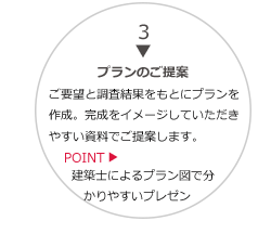 経験豊富なスタッフがお客様と打合せを繰り返し、ご納得頂けるプランを作成いたします。
